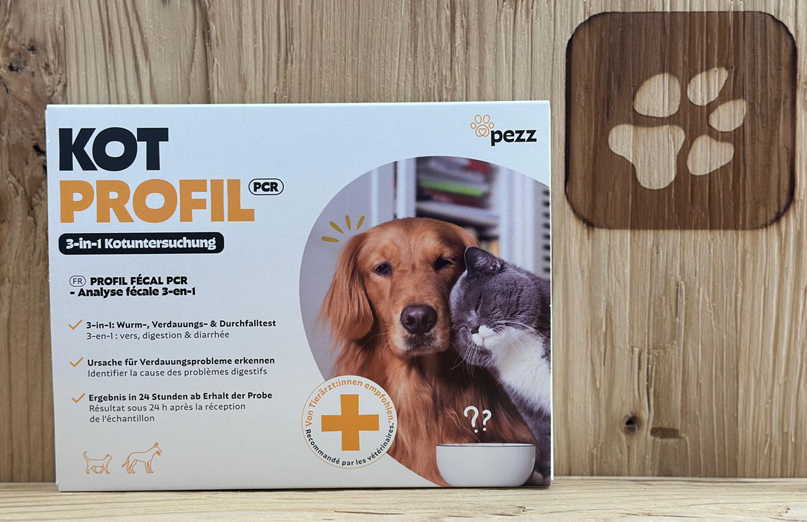 Mit dem Pezz Kotprofil Test für Hunde und Katzen können Sie ganz einfach und bequem zu Hause testen und gesundheitliche Risiken frühzeitig erkennen.