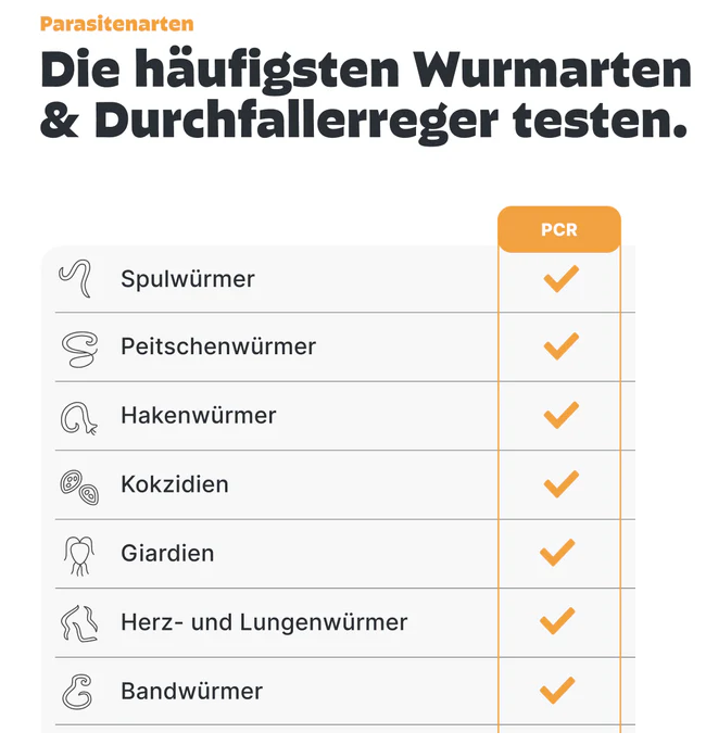 - Zuhause auf die häufigsten Wurmarten & Durchfallerreger testen